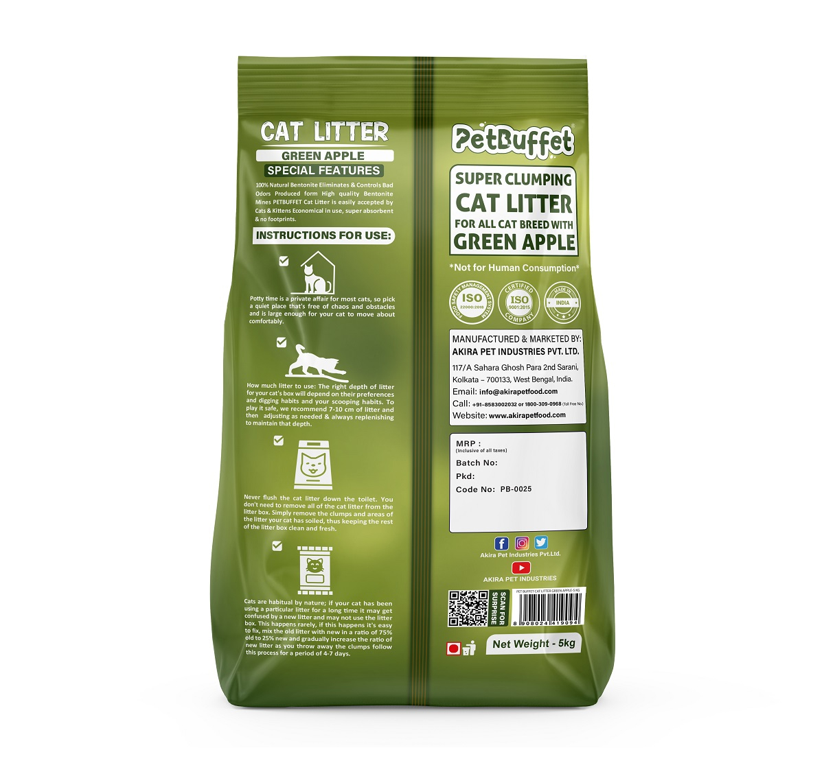 PREMIUM CLUMPING CAT LITTER For All Cat Breed with Green Apple Fragrance